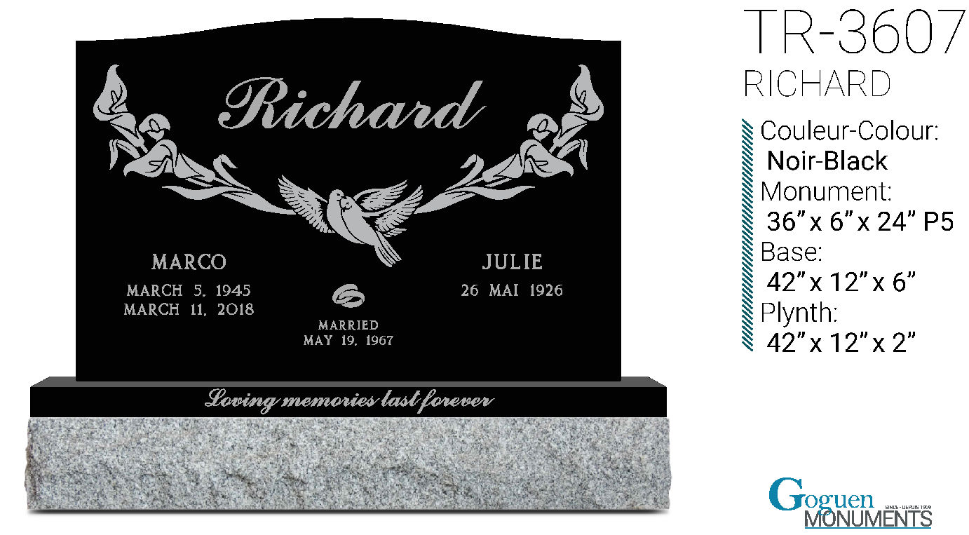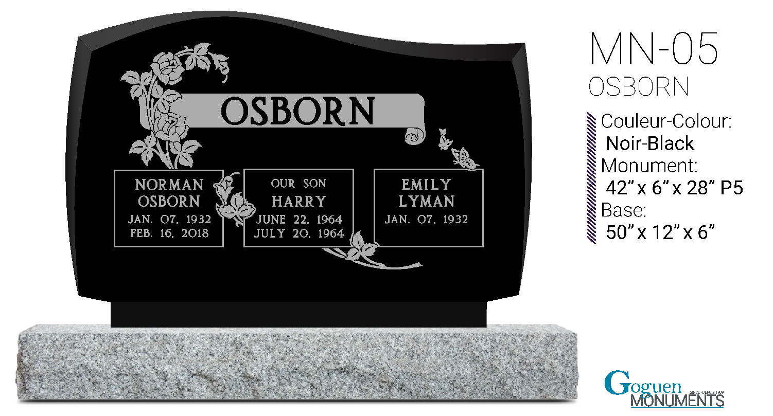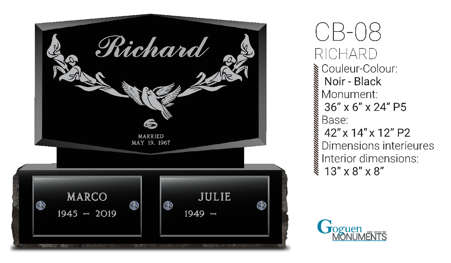 Using various carving techniques such as curves, bevels and shaped contours these monuments look modern and esthetically pleasing.